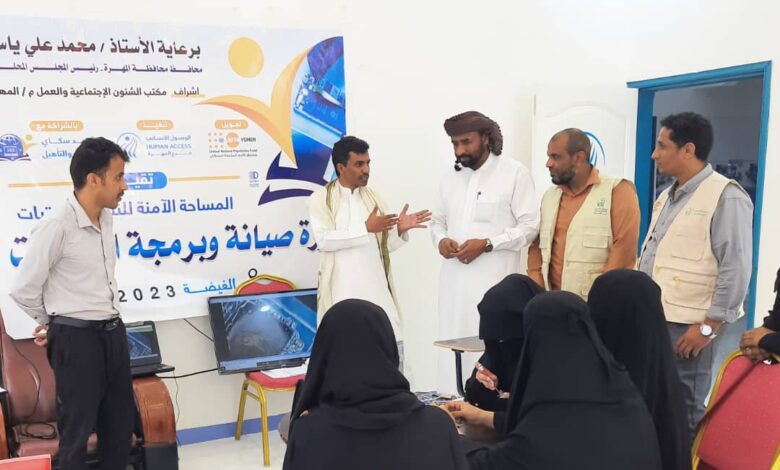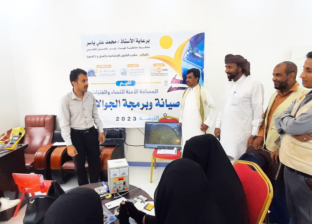 قام الاستاذ بدر كلشات وكيل محافظة المهرة بزيارة للمشاركات لدورة صيانة و برمجة الجوالات برفقة رئيس جمعية الوصول الإنساني أ. عبدالله نويجع و المدير التنفيذي للجمعية أ. مصطفى القادري و أ. سيف فرحان منسق مشروع المساحة الآمنة بالغيضة.