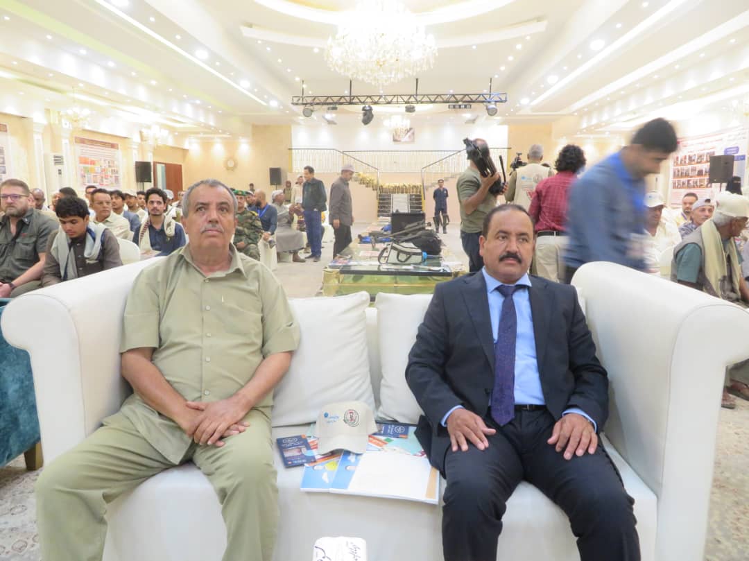 بحضور العميد ركن امين العقيلي المدير االتنفيذي للبرنامج والعميد ركن فضل غرامه مدير مكتب تنسيق الاعمال المتعلقه بالالغام بعدن ومدير دائرة الاشغال العسكرية والعميد ركن قائد هيثم مدير البرنامج الوطني للتعامل مع الالغام وعدد من القيادات العسكرية والامنيه ومدراء عموم مكاتب الوزارات.
