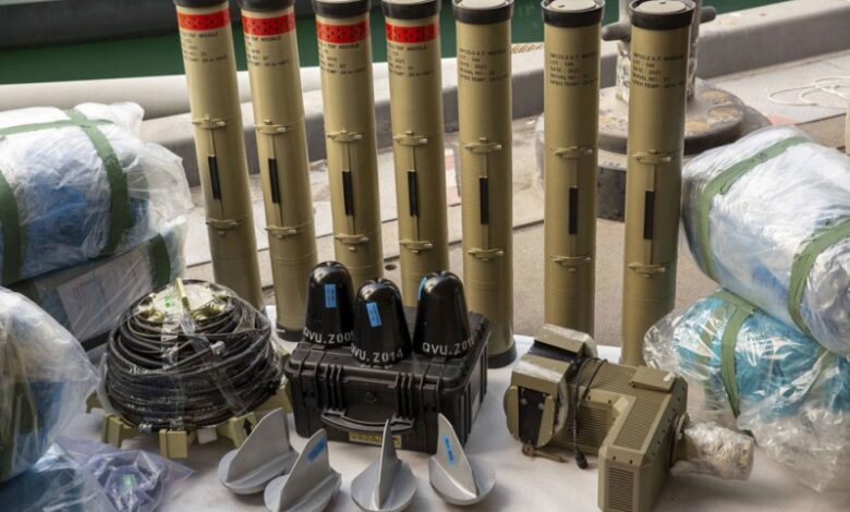 وتشمل الأسلحة المصادرة صواريخ موجهة مضادة للدبابات إيرانية الصنع على غرار صواريخ “كورنيت” الروسية، ومكونات صواريخ بالستية متوسطة المدى، وفقا للبحرية البريطانية.