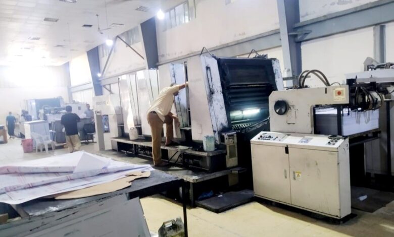 مؤسسة مطابع الكتاب المدرسي بعدن توقف نشاطها بطباعة الكتاب المدرسي .