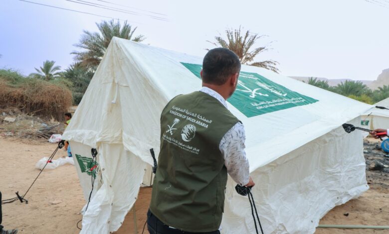 مركز الملك سلمان للإغاثة يوزع خيام وحقائب إيوائية طارئة للمتضررين في مخيم مدودة بحضرموت