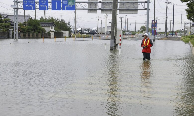 وفاض نهران في ياماغاتا ونهر في أكيتا، بحسب قناة «إن إتش كاي» التي بثّت مشاهد تظهر تدفقاً غزيراً لمياه تجرف سيارات عدة، منها سيارة للشرطة.