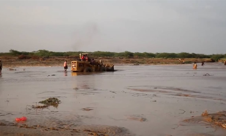 استمرار أعمال إزالة مخلفات السيول من جسور وادي حسان بأبين