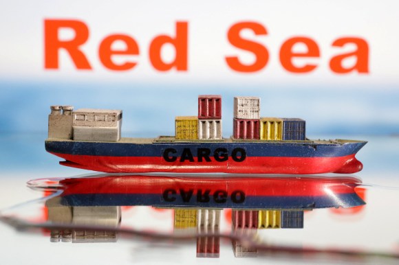 وأغرق الحوثيون سفينتين خلال حملة بالطائرات المسيرة والصواريخ مستمرة منذ تسعة أشهر وتستهدف حركة الشحن التجاري في البحر الأحمر وخليج عدن.
