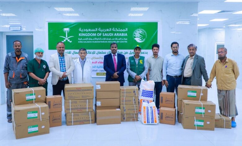 مركز الملك سلمان يسلم الدفعة الرابعة من المحاليل ومستلزمات الإستصفاء الدموي لمرضى الكلى بالمكلا