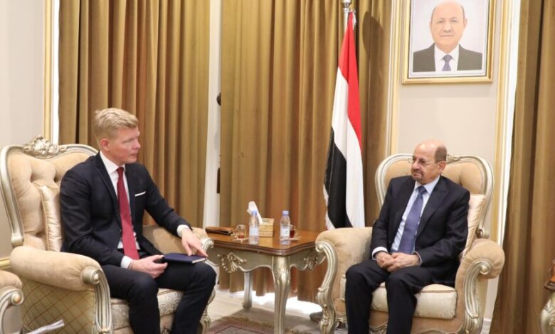 التقى وزير الخارجية وشؤون المغتربين الدكتور شائع الزنداني، اليوم الثلاثاء، المبعوث الخاص للأمين العام للأمم المتحدة إلى اليمن هانس غروندبرغ.