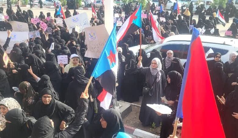 تظاهرة نسوية حاشدة في عدن احتجاجاً على الانهيار المعيشي وانقطاع الكهرباء(صور)