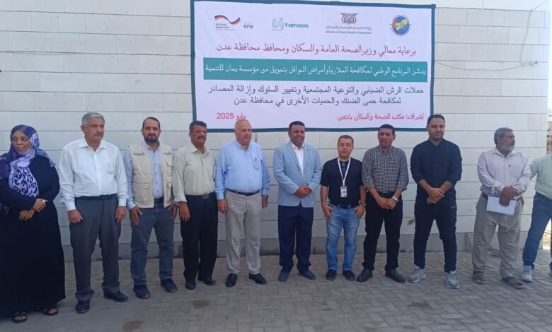 كما عبر عن شكره لوكيل قطاع الرعاية الأولية ومدير عام البرنامج الوطني لمكافحة الملاريا ونواقل الأمراض ولمؤسسة يمان للتنمية على جهودهم ودعمهم لإنجاح حملات الرش الضبابي والتوعية المجتمعية .