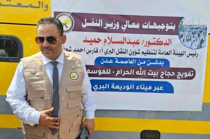 دشن رئيس الهيئة العامة لتنظيم شؤون النقل البري الاستاذ فارس احمد شعفل، صباح اليوم، انطلاق أولى رحلات التفويج البري لحجاج بيت الحرام من العاصمة عدن.