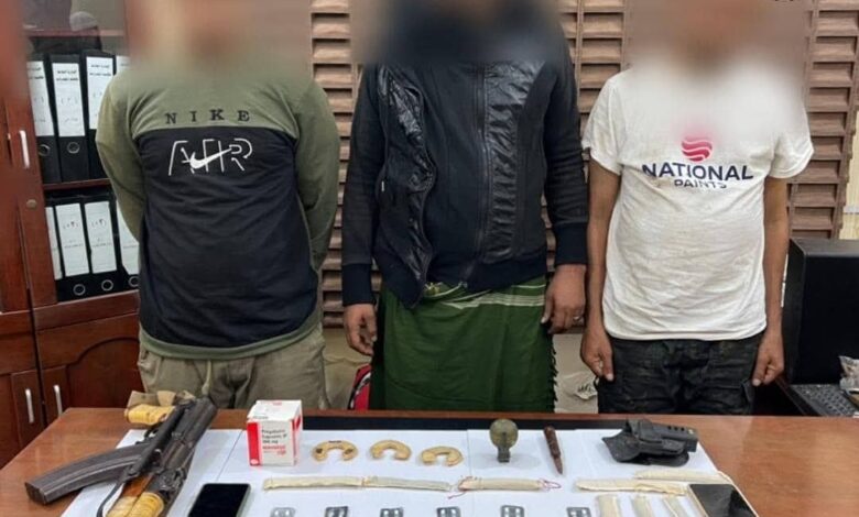 عدن:ضبط ثلاثة متهمبن بحوزتهم مخدرات ومتفجرات