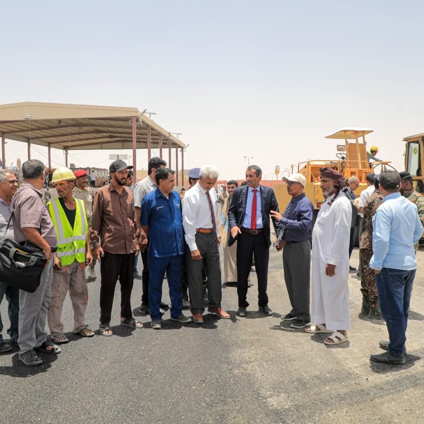 دشّن وكيل محافظة المهرة للشؤون الفنية المهندس عوض أحمد قويزان، ومعه وكيل وزارة الزراعة لقطاع الخدمات الدكتور فهمي محمد الغتناني، ومدير عام جمرك ميناء شحن البري الأستاذ ثابت عوض مبارك، اليوم، استكمال تنفيذ الطبقة الإسفلتية الأخيرة لساحة جمرك ميناء شحن البري، وذلك وفقاً للدراسات والتصاميم المعتمدة، وبتمويل مشترك من قبل وزارة المالية والسلطة المحلية، وتنفيذ مؤسسة مقبل مبارك وإخوانه للتجارة والتوكيلات وخدمات حقول النفط والمقاولات العامة.