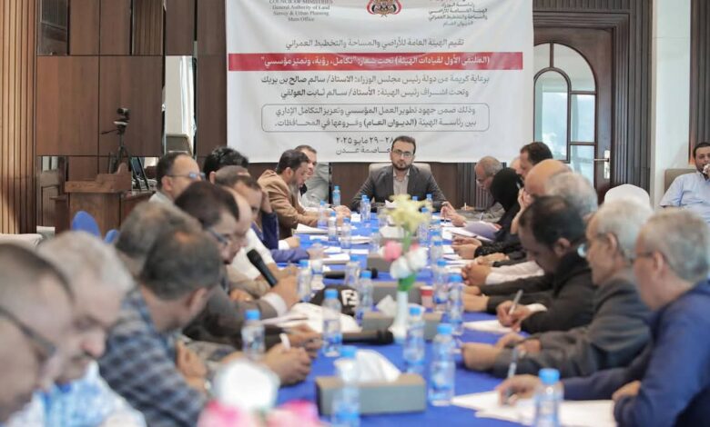 اختتمت اليوم في العاصمة عدن أعمال الملتقى الأول لقيادات الهيئة العامة للأراضي والمساحة والتخطيط العمراني وفروعها في المحافظات، الذي عُقد لمدة يومين، برعاية دولة رئيس مجلس الوزراء سالم صالح بن بريك، وإشراف رئيس الهيئة سالم ثابت العولقي ، وذلك ضمن جهود تطوير العمل المؤسسي وتعزيز التكامل الإداري بين رئاسة الهيئة (الديوان العام) وفروعها في المحافظات.