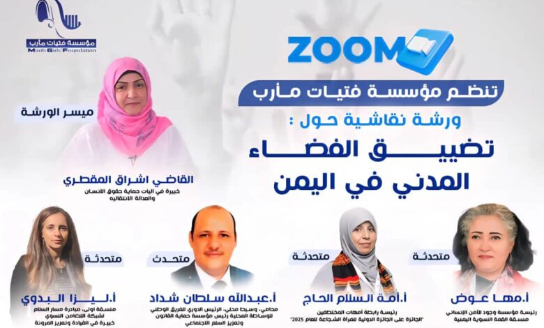 مؤسسة”فتيات مأرب” تنظم جلسة نقاش حول تصاعد الانتهاكات وتضييق الفضاء المدني