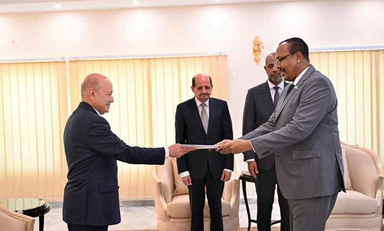 رئيس مجلس القيادة يتسلم أوراق اعتماد سفير جمهورية الصومال الفدرالية
