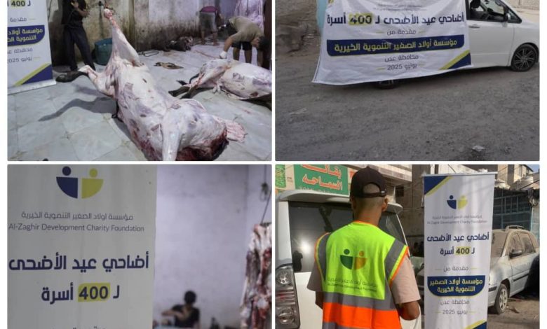 نفذت مؤسسة أولاد الصغير التنموية، في ثاني أيام عيد الأضحى المبارك، مبادرة توزيع لحوم الأضاحي، مستهدفة 400 أسرة في كافة مديريات العاصمة عدن من الفئات الأكثر احتياجًا.
