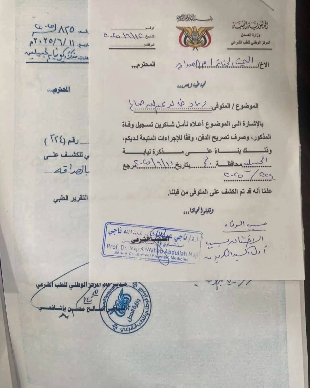 أعلن المركز الوطني للطب الشرعي بالعاصمة عدن، اليوم، نتائج الكشف الظاهري الأولي لجثث الشبان الأربعة الذين عُثر عليهم متوفين داخل مركبة متوقفة على الخط العام بمحافظة لحج، في واقعة هزّت الرأي العام وأثارت تساؤلات واسعة.