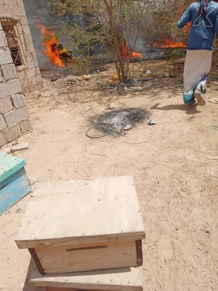وقال مصدر محلي إن “الحريق المجهول الذي اندلع في مزرعة الشيخ رشيد عبدالله عامر بن كده بشبام، تسبب باحتراق 30 نخلة و قتل 150 خلية للنحل”.
