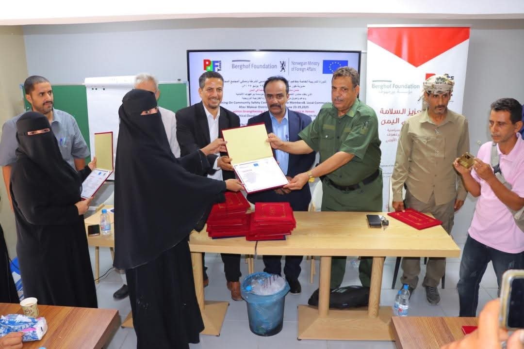 وتأتي هذه الدورة ضمن مشروع “تعزيز السلامة المجتمعية في اليمن”، الذي ينفذه منتدى التنمية السياسية (PDF) بالشراكة مع مؤسسة بيرجهوف الألمانية، وبدعم من الاتحاد الأوروبي ووزارة الخارجية النرويجية، واستضافها مقر منتدى التنمية السياسية في عدن.
