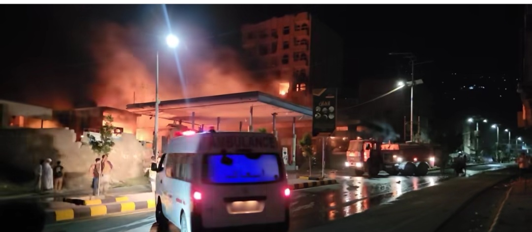 بالصور. سقوط عدد من الجرحى واحتراق محطة غاز في تعز