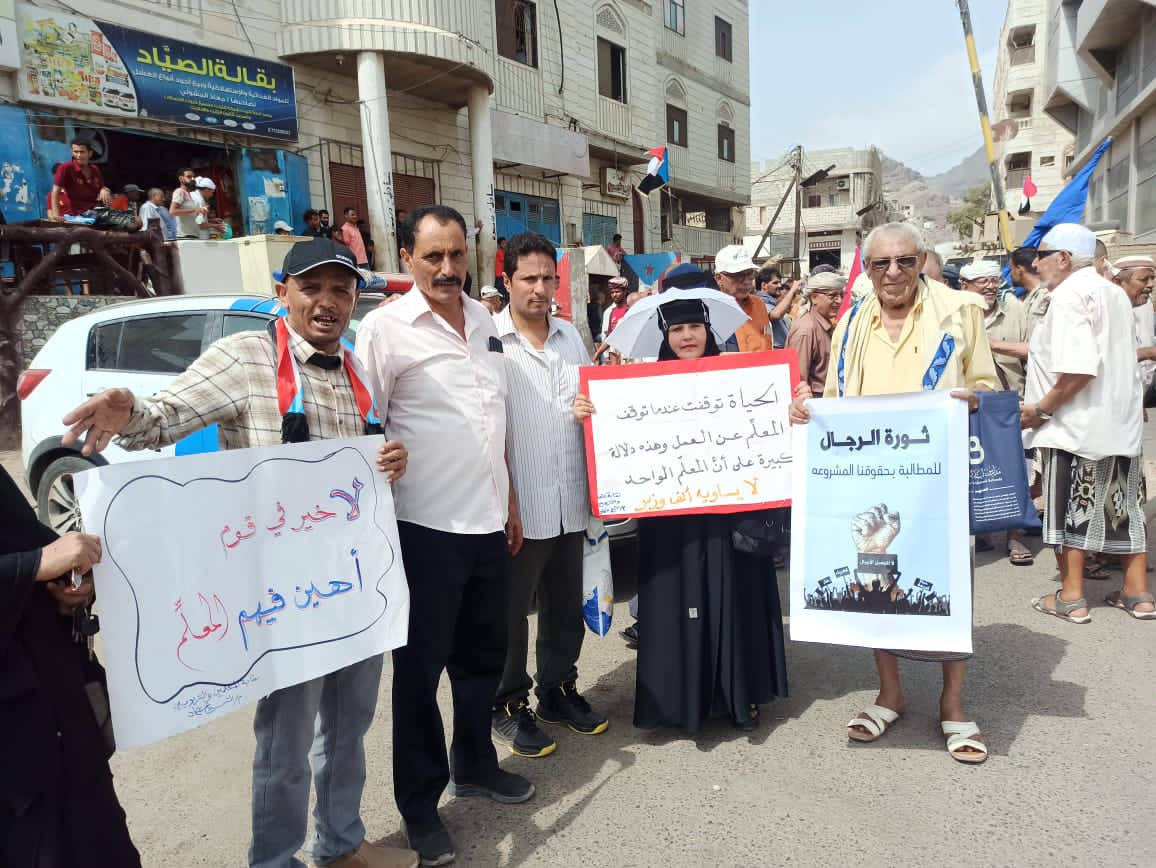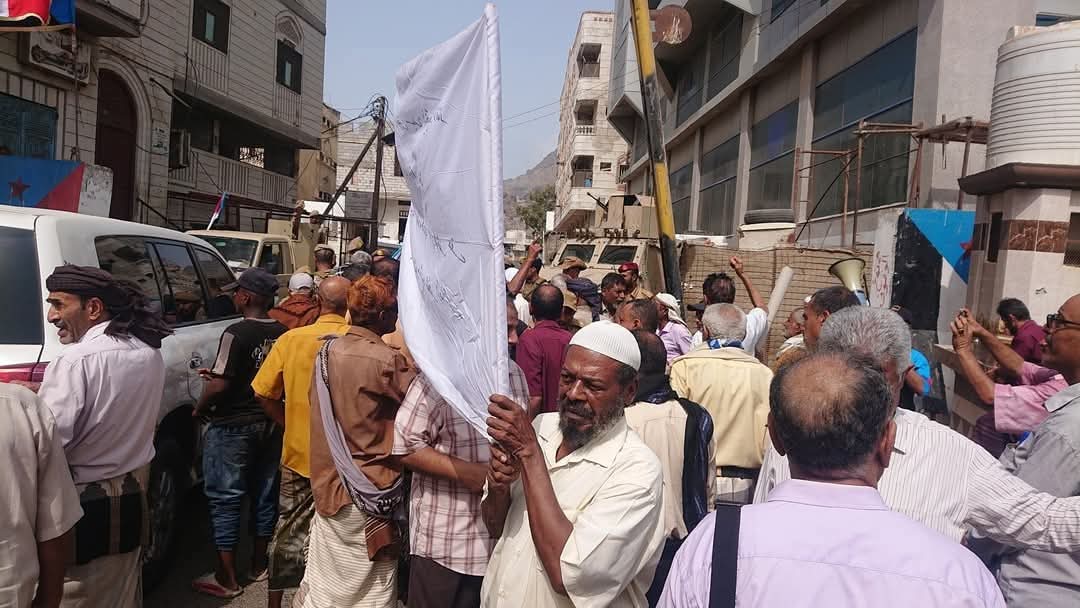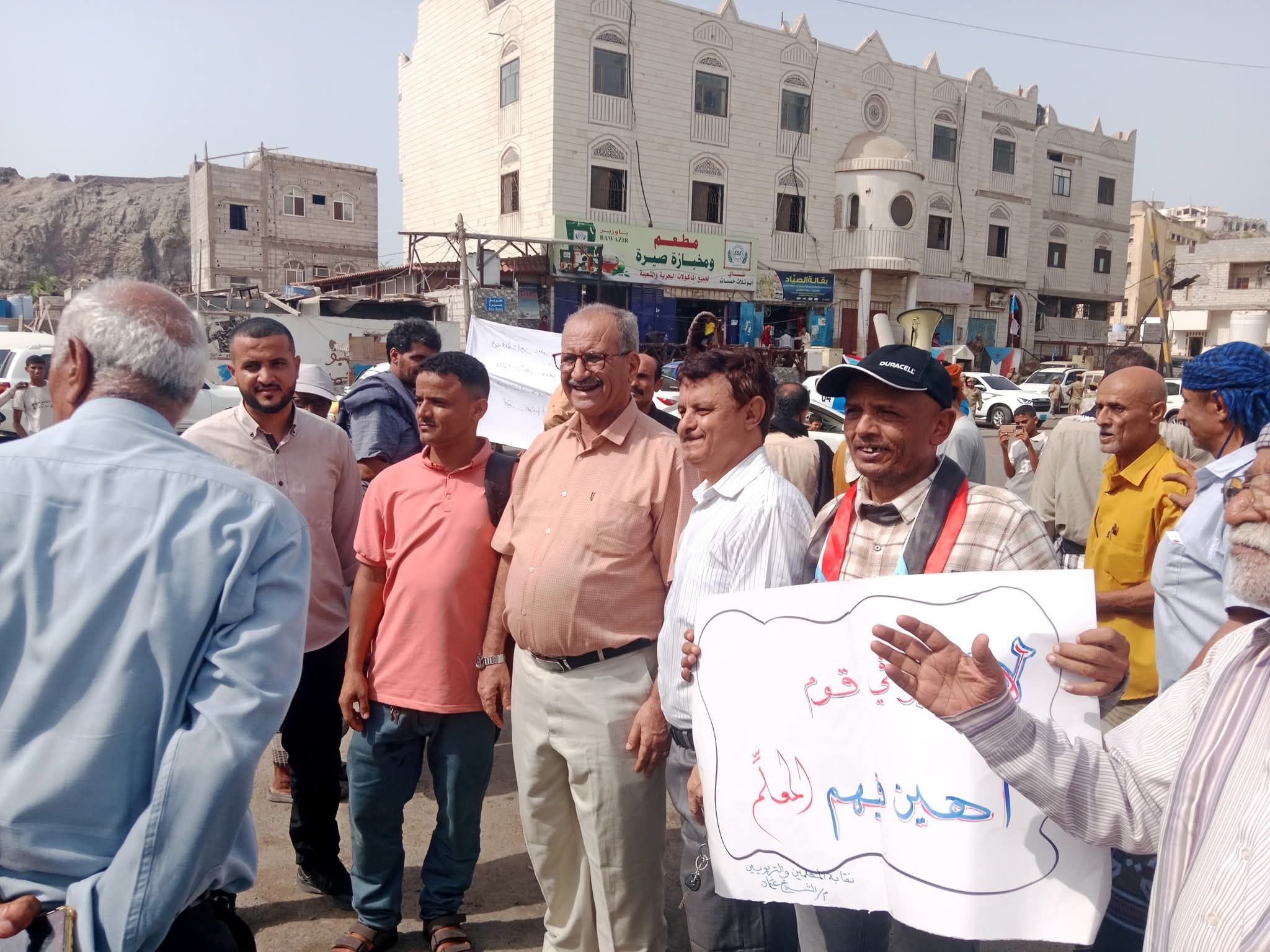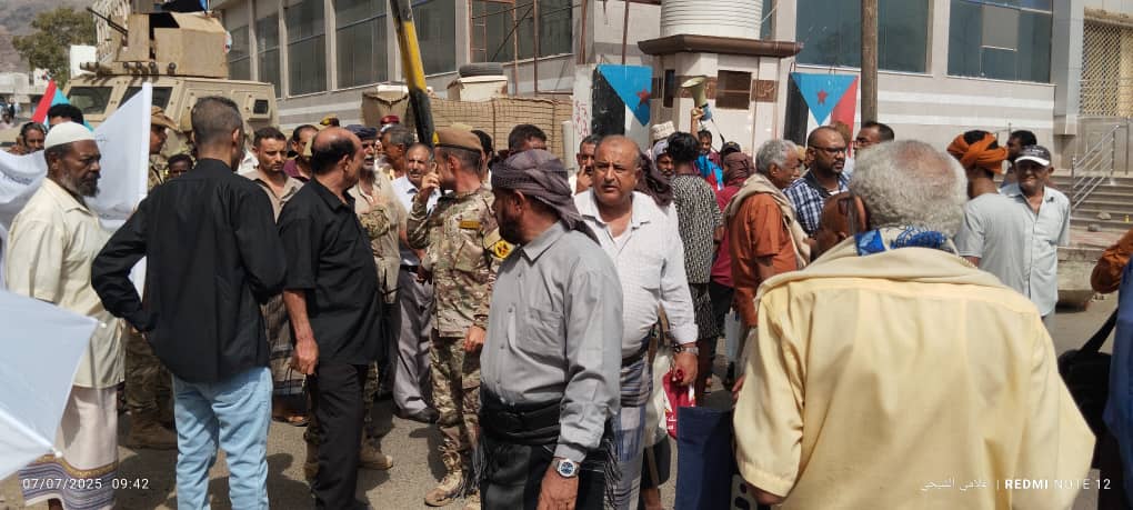-كانت الوقفة الاحتجاجية أمام بوابة المعاشيق من جهة بوابة صيرة تميزت بحضور جمع كبير من الشرفاء و الوطنيين تحت أشعة الشمس الحارقة.