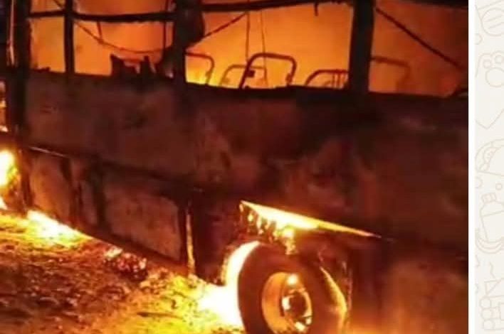 إحراق باص تابع لشركة أسمنت الوحدة في أبين