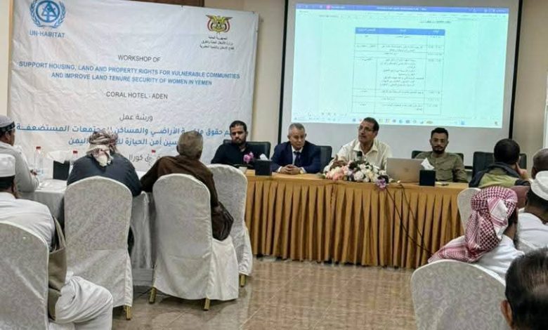 تعزيز حقوق ملكية الأراضي والمساكن للمجتمعات المستضعفة وتمكين المرأة من الحيازة الآمنة في ورشة عمل بعدن