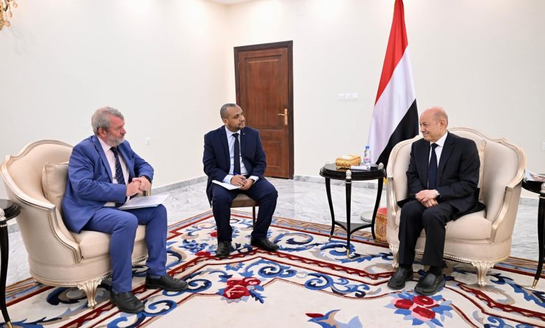 استقبل فخامة الرئيس الدكتور رشاد محمد العليمي، رئيس مجلس القيادة الرئاسي اليوم الخميس بقصر معاشيق الممثل المقيم لمنظمة الأمم المتحدة للطفولة (يونيسف) بيتر هوكينز، بحضور وزيري الخارجية وشؤون المغتربين الدكتور شائع الزنداني، والمياه والبيئة المهندس توفيق الشرجبي.