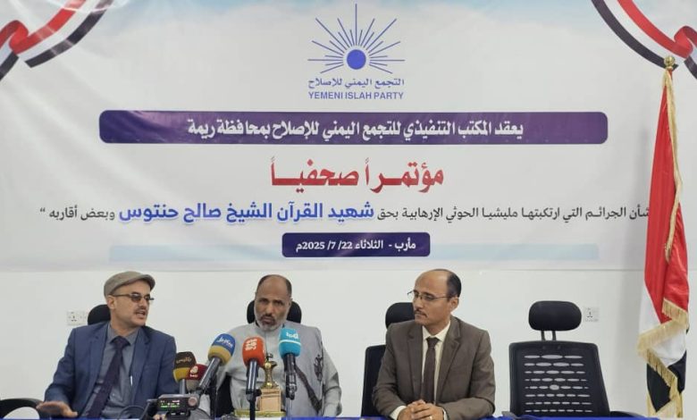 وفي المؤتمر الذي دعا إليه المكتب التنفيذي للتجمع اليمني للإصلاح بمحافظة ريمة،أوضح بيان صادر عنه اليوم الاثنين، أن الجريمة التي وقعت يوم الثلاثاء الأول من يوليو الجاري 2025م، جاءت بعد سلسلة من الانتهاكات الممنهجة مارستها المليشيا الإرهابية ضد الشيخ منذ عام 2022م، على خلفية رفضه تدريس “ملازم” حسين الحوثي، وقيامه بفتح حلقات لتحفيظ القرآن الكريم في مسجد قريته.