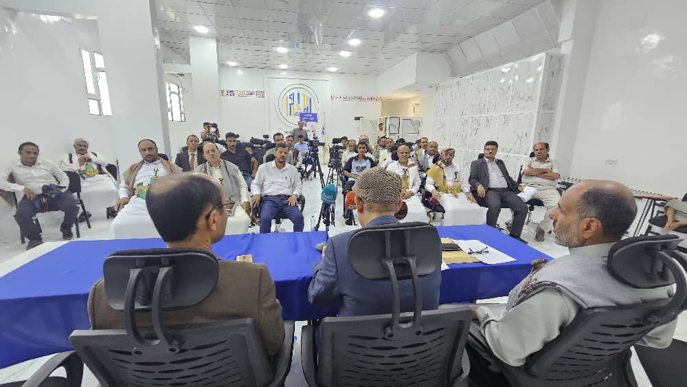 مؤتمر صحفي بمأرب يدعو إلى محاكمة قتلة الشيخ صالح حنتوس.