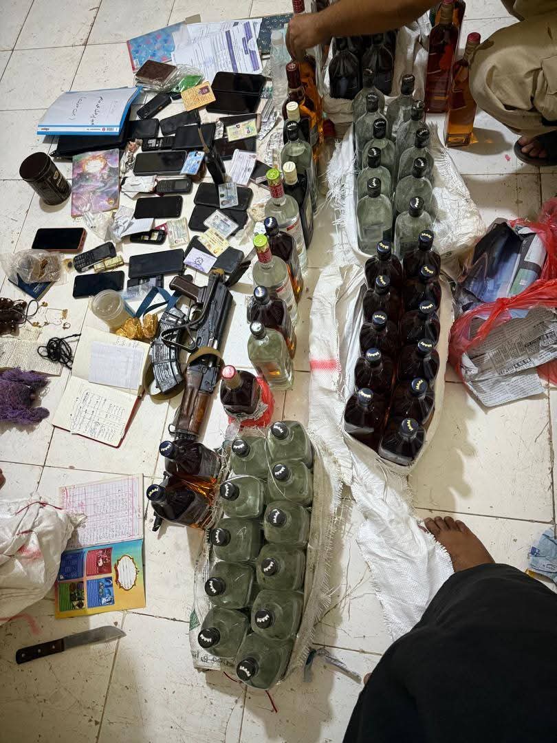 وقد تم العثور الئ جانب كمية الخمور الكبيرة علئ طلاسم سحرية تثبت تورط المتهمين في