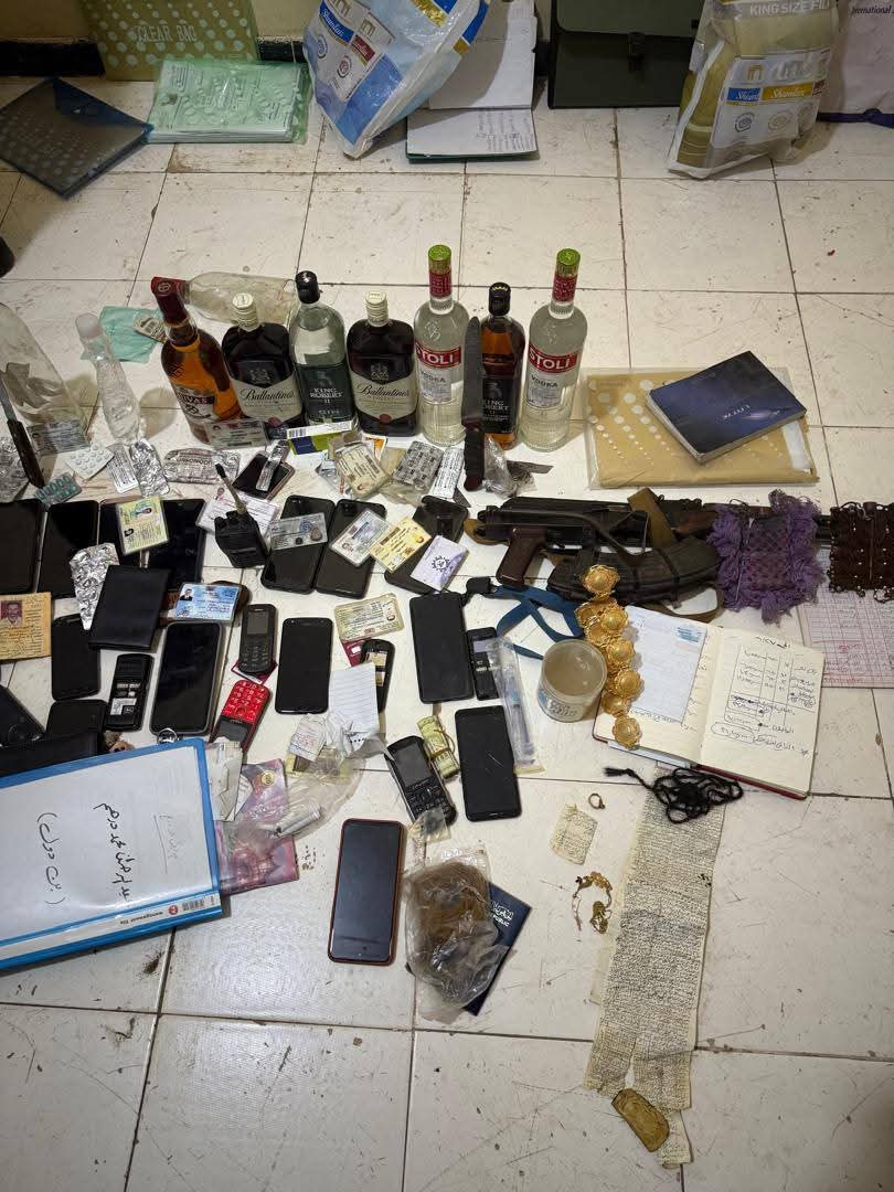 والجوالات والمبالغ المالية واسلحة ناريه كذلك