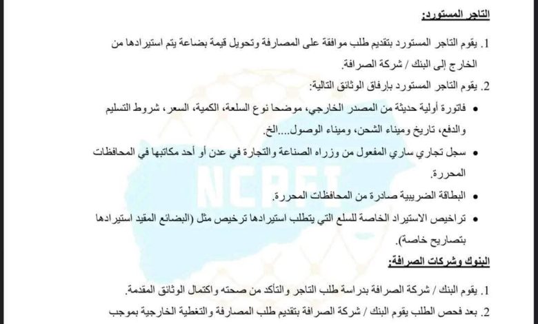 📋 قائمة السلع المحصور استيرادها عبر البنوك: