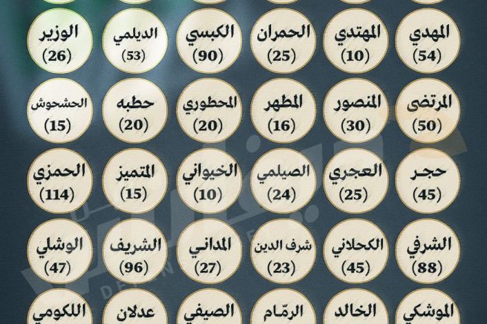 ومن بيت السراجي (46) ضابطا والغرباني (59) والجرادي (35). ومن أسرة الحاكم (26) ومن بيت الرزامي (26)، وبيت العزي (15) والحجازي (11) والصمّاد (6) والمشّاط (9).. و(8) ضباط من أسرة الجوهري.