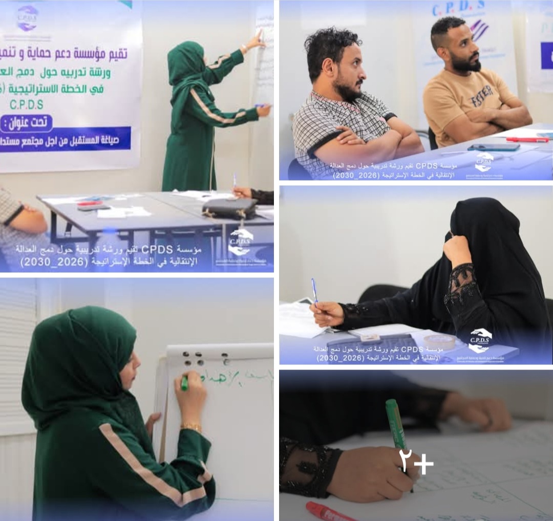 اختتمت مؤسسة دعم حماية وتنمية المجتمع (CPDS)، اليوم، في العاصمة عدن، الورشة التدريبية بعنوان: “صياغة المستقبل من أجل مجتمع مستدام عبر العدالة الانتقالية”، ضمن جهود المؤسسة لدمج مبادئ العدالة الانتقالية في خطتها الاستراتيجية للفترة 2026–2030، بالتزامن مع فعاليات أسبوع العدالة الانتقالية.