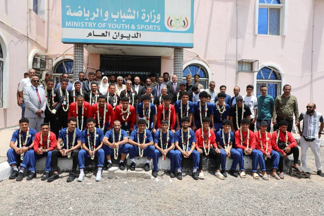 وكان وكيل قطاع الرياضة خالد محسن الخليفي، في مقدمة مستقبلي بعثة المنتخب فور وصولها مطار عدن الدولي، واصطحابهم إلى مبنى الوزارة لتكريمهم، ومن ثم إقامة وجبة غداء على شرف البعثة، واستضافتهم في أحد فنادق العاصمة إلى حين مغادرتهم منها.