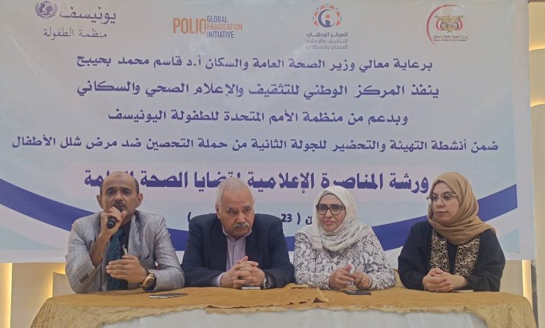نظم المركز الوطني للتثقيف والإعلام الصحي والسكاني وبدعم من منظمة الأمم المتحدة للطفولة اليونيسف ضمن انشطة التهيئة والتحضير للجولة الثانية من حملة التحصين ضد مرض شلل الأطفال .