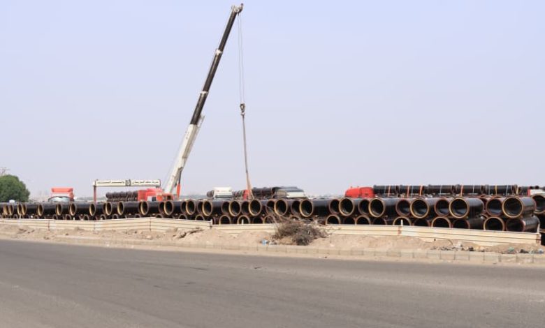 وصول الدفعة الأولى من اجمالي شحنة المواسير لمشروع الخط الاستراتيجي للصرف الصحي بعدن .