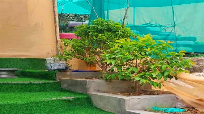 نعود إلى الأخ نبيل الصلاحي المحرمي الذي عاد من المهجر كما علمت حتى راح يجسد حبه الأزلي وعشقه للزراعة من خلال جلب شتلات وبذور أصناف عديدة من النباتات والأشجار والأعشاب يقول نبيل :”جهزت أرض حديقة البيت بتسويتها وبالتالي تقسيمها والبدء في زراعة أصناف عدة كمشتل زراعي وتجريب الأصناف الزراعية التي يمكن زراعتها في يافع ومنها رخمة بلغ مجموع الأصناف الزراعية التي نجحت زراعتها ما يزيد عن اثنين وثلاثين صنفًا بدءً من العنب بأنواعه إلى البرتغال اليوسفي وأبوسرة والليمون وكذلك التفاح والمانجو(( 5 أصناف) الأناناس وباختصار سأعطيكم كشفا بالأشجار والنباتات التي تحويها حديقة منزلي حاليا وهي: المانجو 5 أنواع والجوافة نوعين