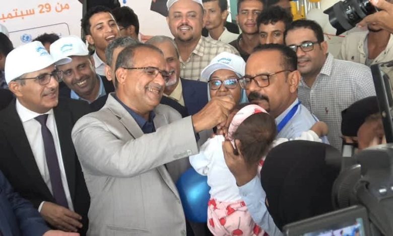 بحضور الوالي والزعوري وبحيبح:مكتب الصحة بعدن يدشن الجولة الثانية لحملة التحصين ضد شلل الأطفال