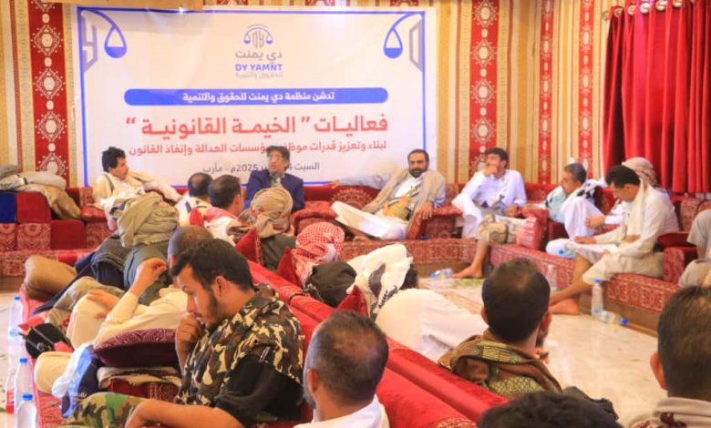 في خطوة نوعية تعزز من مسار العدالة وبناء القدرات القانونية والمؤسسية، دشنت منظمة دي يمنت للحقوق والتنمية، في محافظة مأرب فعاليات الخيمة القانونية، في حدث يقام للمرة الأولى بالمحافظة، ويستهدف رفع كفاءة موظفي المؤسسات القضائية والعدلية وأجهزة إنفاذ القانون.