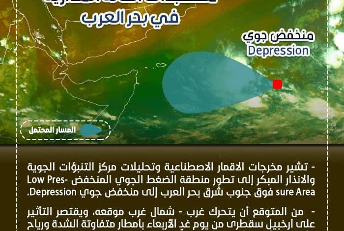 الأرصاد الجوية: تطور منطقة الضغط الجوي المنخفض فوق جنوب شرق بحر العرب إلى منخفض جوي