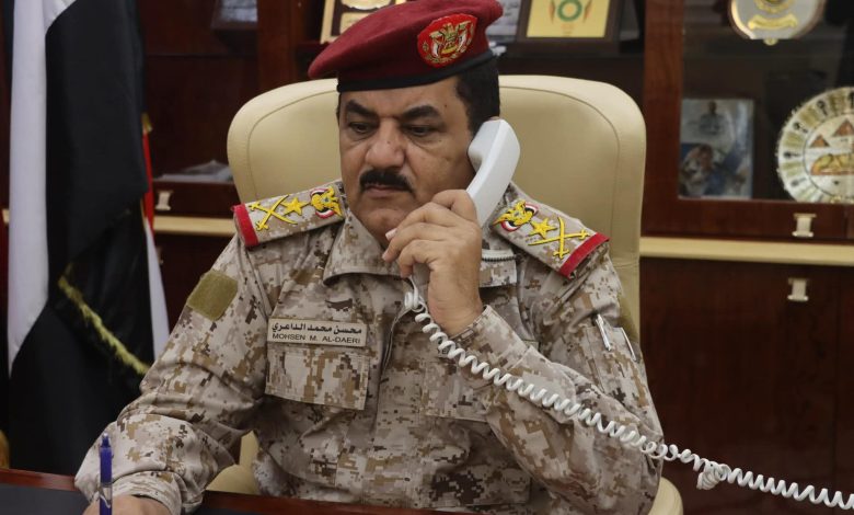 أجرى وزير الدفاع الفريق الركن دكتور محسن محمد الداعري اتصالا هاتفيا بقائد اللواء الخامس حماية رئاسية العميد الركن عدنان رزيق القميشي للاطمئنان على صحته بعد إصابته بعملية إرهابية غادرة استهدفت بها مليشيا الحوثي الارهابية موكبه غرب تعز، وأسفرت عن استشهاد جنديين من حراسته وإصابة اخرين.