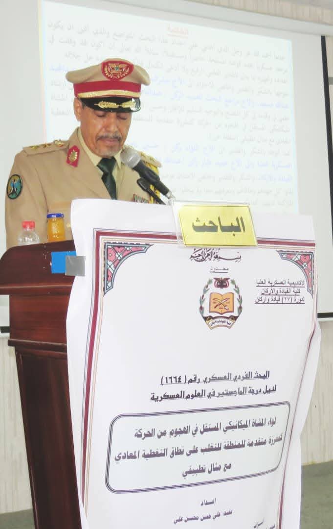 الماجستير بامتياز للباحث العقيد/علي حسن محسن من الأكاديمية العسكرية العليا