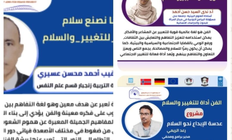 أطلقت شبكة بناء السلام بإشراف مركز المرأة للدراسات والبحوث الإنسانية في جامعة عدن، وبالشراكة مع برنامج الأمم المتحدة الإنمائي UNDP – SPF الحملة الرقمية بعدستنا نصنع سلام الهادفة إلى إبراز دور الفن والصورة والفيديو في تعزيز مبادئ التعايش والسلام المجتمعي.