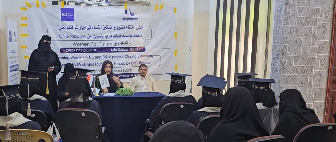 اختتمت مؤسسة فتيات مأرب، بدعم من منظمة ONG Rescate، مشروع “تمكين النساء في مهارات التمريض” والذي استهدف تدريب 15 امرأة من مخيمات النزوح في محافظة مأرب على المهارات التمريضية الأساسية.