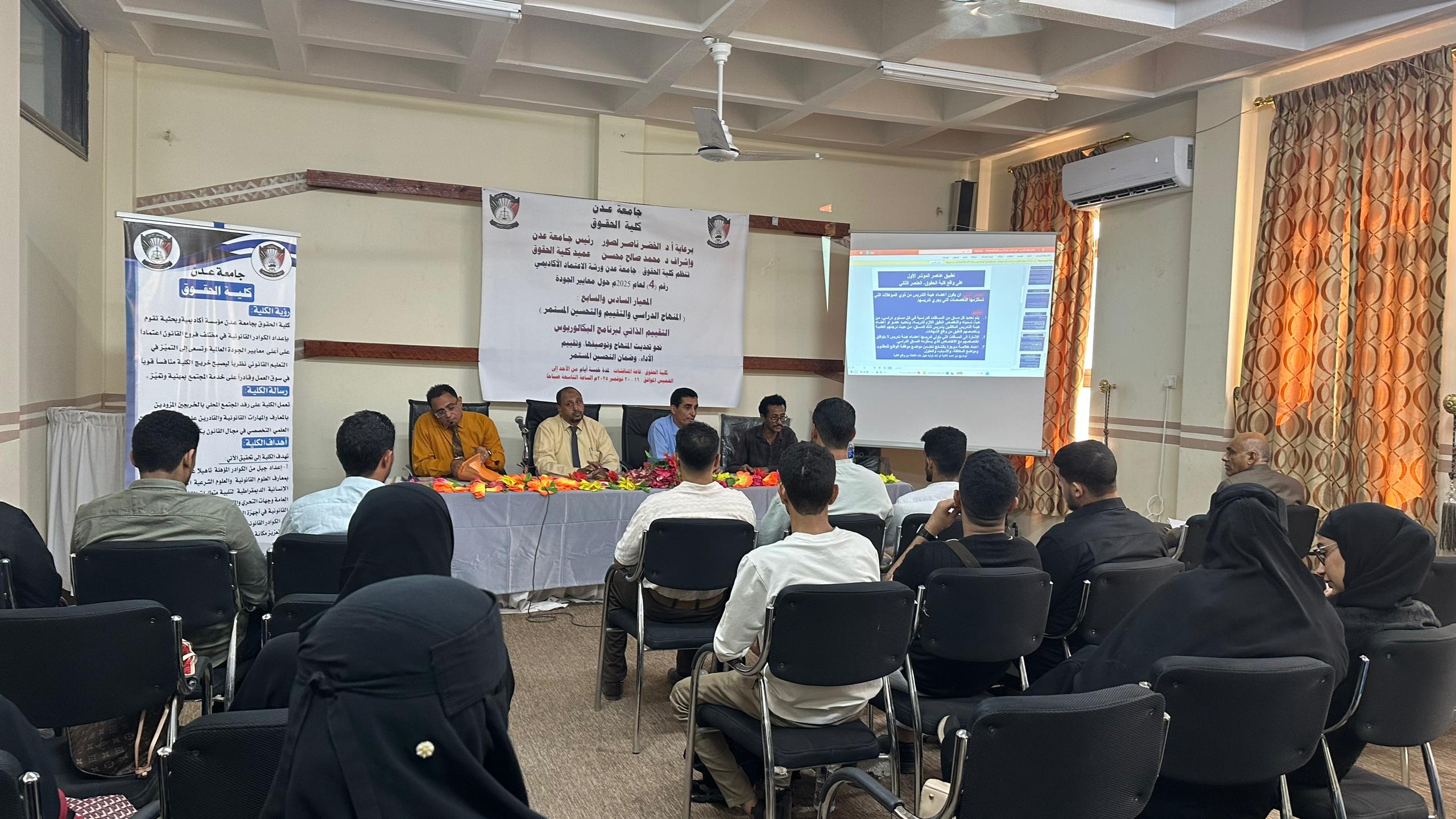 وتأتي هذه الورشة في سياق الجهود التي تبذلها عمادة الكلية سعياً للحصول على الاعتماد الأكاديمي في برنامج البكالوريوس في القانون.