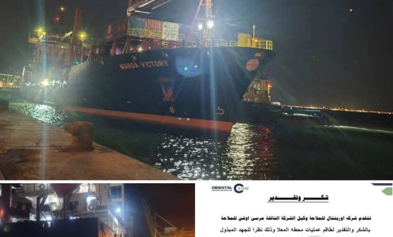 رسو السفينة الثانية لشركة مرسى في رصيف المعلا بعدن