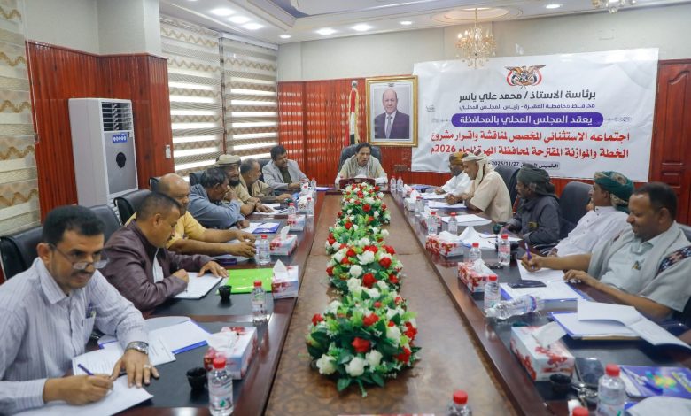 ترأس معالي الأستاذ محمد علي ياسر، محافظ محافظة المهرة – رئيس المجلس المحلي، اليوم، اجتماعًا استثنائيًا للمجلس المحلي بالمحافظة، خُصِّص لمناقشة وإقرار مشروع الخطة والموازنة العامة للعام 2026م.