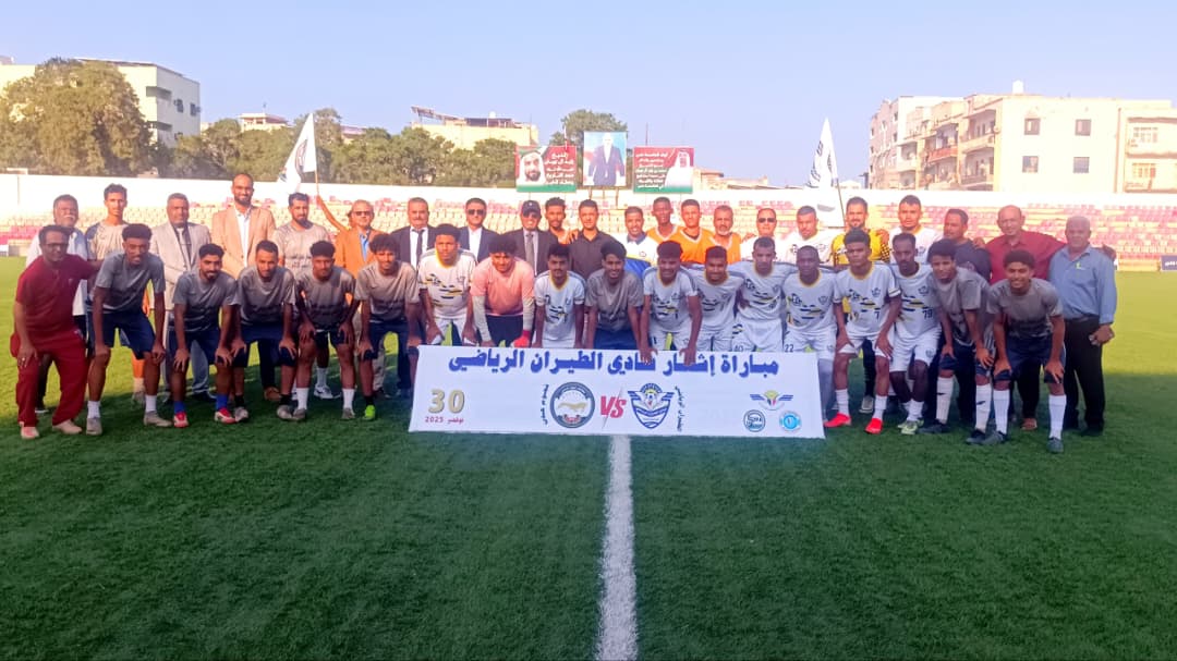 شهد ملعب الشهيد الحبيشي بالعاصمة عدن، عصر اليوم، أحداث المباراة الودية التي جمعت فريق نادي الطيران مع منتخب نجوم عدن، بمناسبة الإشهار الرسمي لنادي الطيران الرياضي التابع للهيئة العامة للطيران المدني والأرصاد، الذي تم تأسيسه مؤخراً ضمن استراتيجية وزارة النقل وهيئة الطيران الرامية إلى ترسيخ ثقافة النشاط الرياضي داخل بيئة العمل المؤسسي، وتعزيز قيم الانتماء وروح الفريق الواحد لدى موظفي الهيئة ومطاراتها بعموم الجمهورية.