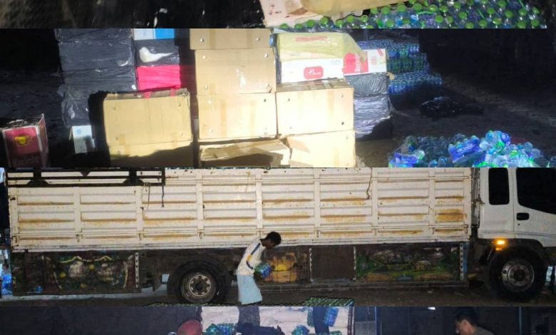 أبين:كشف شحنة تهريب مخفية داخل حمولة مياه وحليب في عملية أمنية نوعية